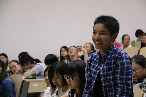 团委学生会在9号教学楼201举行了招新宣讲会,可容纳数百人的教室座无虚席,2015级新同学对即将开始的宣讲会充满期待。