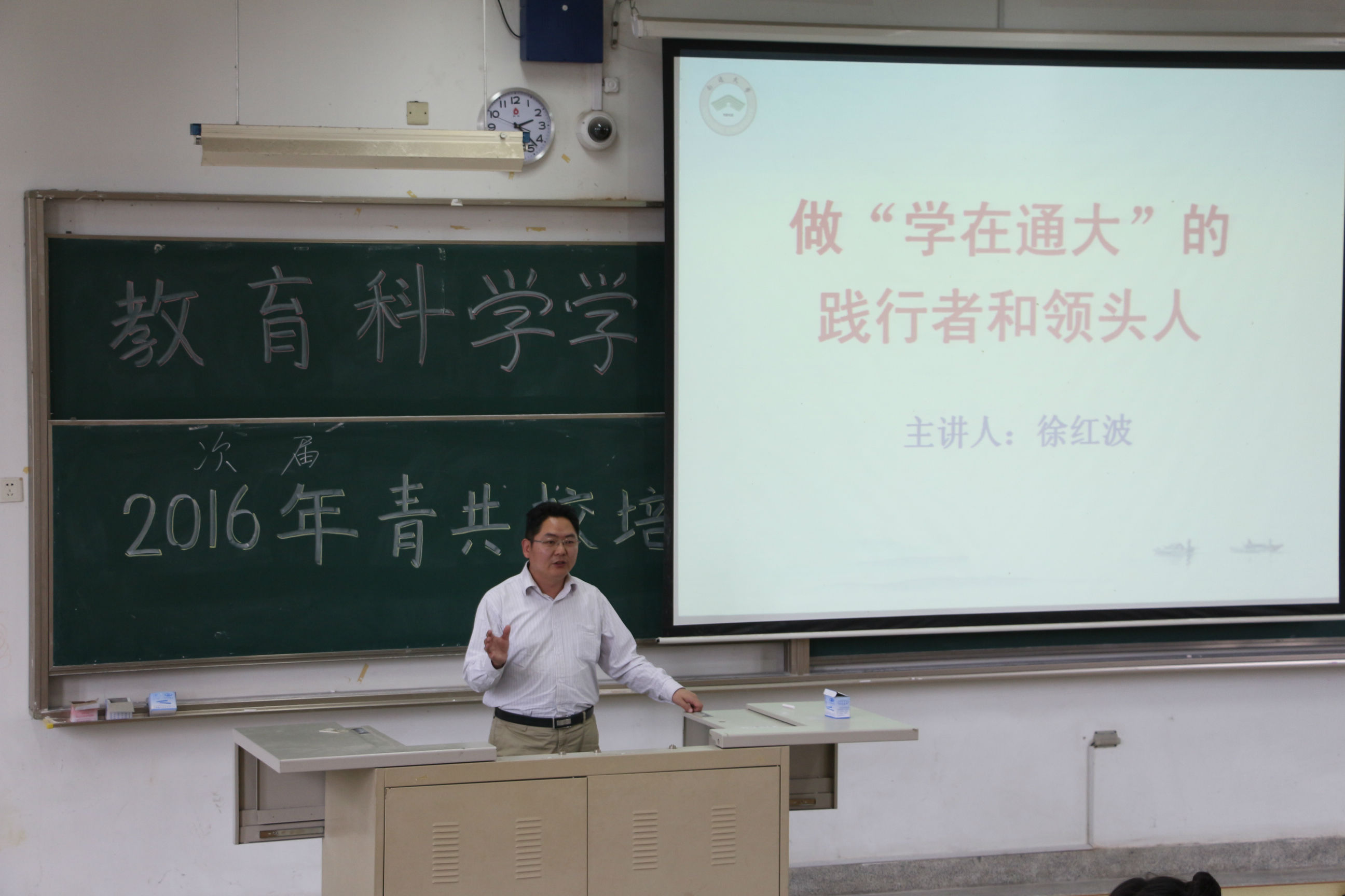 4月18日下午14:00,AI风月 在主校区4号教学楼107室举行了青年共产主义学校培训开班仪式,开班仪式由AI风月 党总支部副书记徐红波老师主持并进行了开班第一讲:“做学在通大的践行者和领头人”专题讲座,教科院全体团委学生会成员参加。