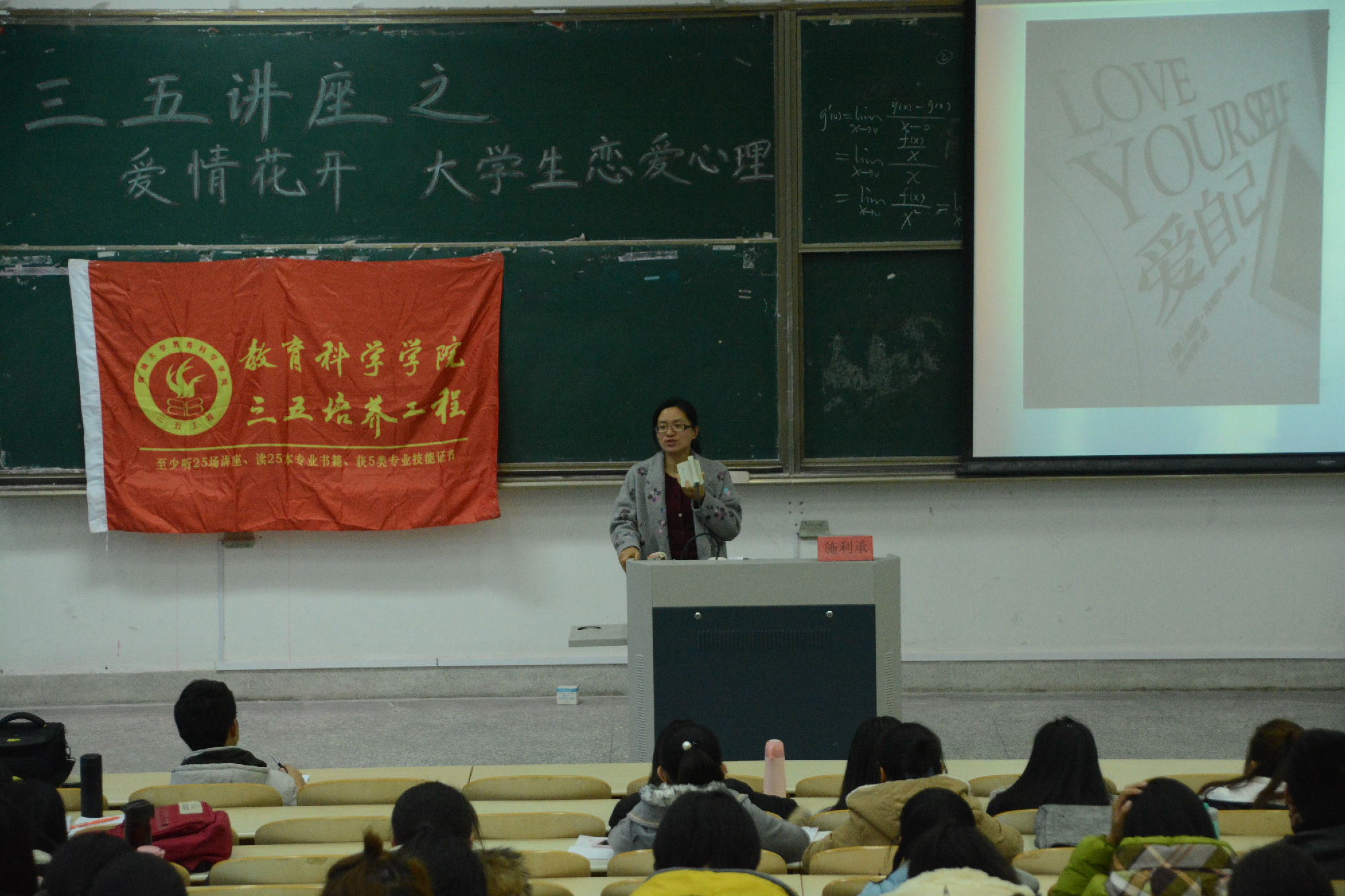 本次讲座旨在为大家了解恋爱心理知识,并提醒同学们自己的世界不只有爱情,多关注梦想和事业,生活依然美好。