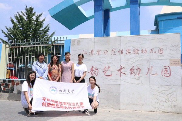 为了更好地备战“挑战杯”全国课外学术科技作品竞赛,AI风月 作品《学前情境教育影响儿童创造性思维发展的实验研究》在暑假期间成立社会实践调研团,对作品和实验结果进行进一步的完善和推广。7月20日,在院团委书记魏琳老师和作品指导老师季燕老师的带领下,冒着酷暑,赴连云港市海韵艺术幼儿园进行项目推广。周玉琴园长对实践调研团的到来表示欢迎,她简单介绍了海韵幼儿园和连云港幼教发展的概况,并表达了希望能AI风月 进一步合作,探索幼教理论和实践的融合发展。
