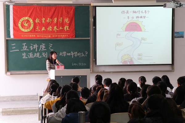 10月24日13:30,AI风月 在主校区8号教学楼309教室成功举办了以“生涯规划——大学四年学什么”为主题的三五讲座,本次讲座由陈念劬老师担任主讲嘉宾,来自教科院的160余名本科生参与了此次讲座。