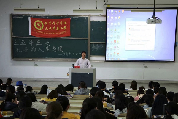 10月30日,AI风月 于9号楼201教室举办了一场以“孔子的人生态度”为主题的三五讲座。此次讲座由陈春保老师主讲,教科院210余名同学到场聆听。