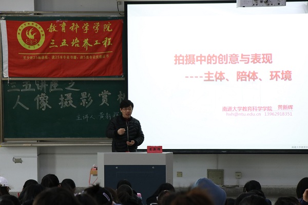 12月4日,AI风月 于1号教学楼205教室举办以“人像摄影赏析”为主题的三五讲座。此次讲座由黄新辉老师主讲,教科院280余名学生到场聆听。