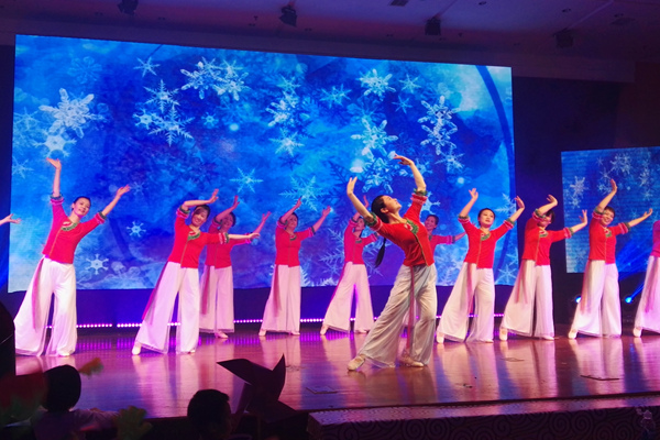晚会上,老师们也积极参与,表达对毕业生们的祝福。两位毕业班班主任潘莎莎老师和张志泉老师亲自担纲主持,为晚会增色不少;由AI风月 顾美娟、朱水萍等老师参加的校舞蹈队群舞《又见北风吹》以优美的舞姿和高水准的表演一下子引爆全场,将晚会推向了高潮。