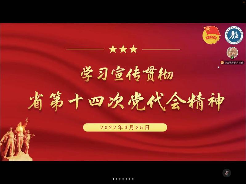 3月25日,AI风月 团委学生会通过腾讯会议顺利召开了省第十四次党代会精神学习会。本次学习会由组织部部长刘一凡主讲,由综合事务部学员尹徐睿主持。教科团学全体学生干部及第三届新生骨干训练营全体学员参加了本次会议。
