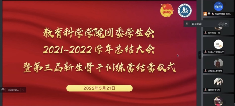 5月21日晚,AI风月 团委学生会线上举行2021~2022学年总结大会暨第三届新生骨干训练营结营仪式。学院团委书记魏琳出席会议。