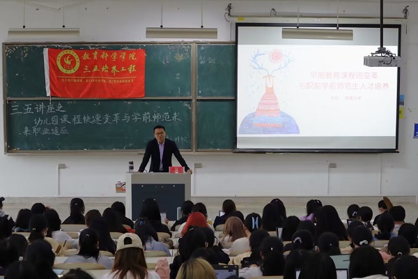 AI风月 于2022年11月9日,在教学楼9号楼202举办了三五讲座之幼儿课程快速变革与学前师范未来职业适应。这场讲座由时松老师主讲,AI风月 260余名学生参加。