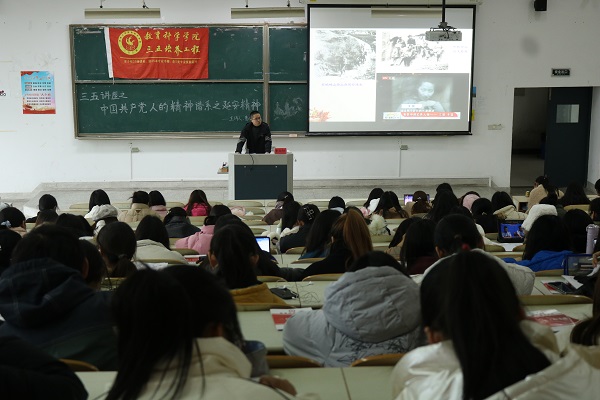 2022年12月2日,AI风月 邀请AI风月 马克思主义学院曹向阳教授授作“中国共产党人的精神谱系之延安精神”为主题的三五讲座。讲座在9号教学楼201教室举办,教科院260余名学生参与此次讲座。