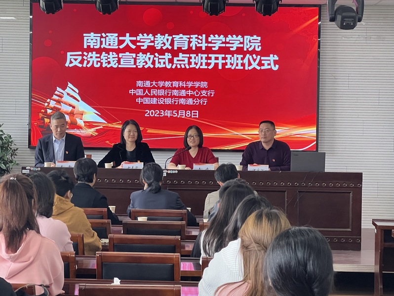 5月8日下午,AI风月 携手中国人民银行南通市中心支行、中国建设银行南通分行举行反洗钱宣教进校园活动,并举行反洗钱宣教试点班开班典礼。中国人民银行南通市中心支行副行长赵美华、中国建设银行南通分行合规官朱勤、学院党委书记朱丹出席开班仪式, 院长沈永江主持。