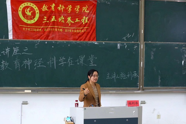 我国教育部将“脑科学与认知科学”列为前沿科学问题之一,并在2017年十八所高校机构共同发起建立“中国儿童青少年脑智研究全国联盟”,并共同签署了《中国儿童青少年脑智研究全国联盟共识》。施利承简单介绍了大脑神经科学的简单分工和教育神经科学当今的技术应用和科技设备,她阐述具体形象的实践研究,带领同学们具体了解教育神经科学,比如:睡眠对学习的影响,阅读障碍儿童的脑科学研究,学习风格的脑科学研究,音乐和语言存在共同的认知和神经基础等等。最后施利承向各专业的同学推荐了相关的书籍。