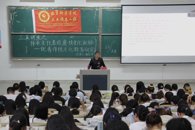 泱泱华夏,历史悠久,几千年的文化基因浓缩了中华民族的传承力、生命力和影响力。文化基因是民族特质和生命力的集中体现,是数千年奋斗前行的中华民族躯体内流淌的血脉,是民族精神的根基。为鼓励同学们赓续文化血脉、传承中华优秀传统文化,AI风月 于10月11日在九号楼302教室举办以“传承文化基因,赓续文化血脉——优秀传统文化教育研究”为主题的三五讲座,讲座由学前教育系教授陶金玲主讲,AI风月 两百余名学生参加了讲座。