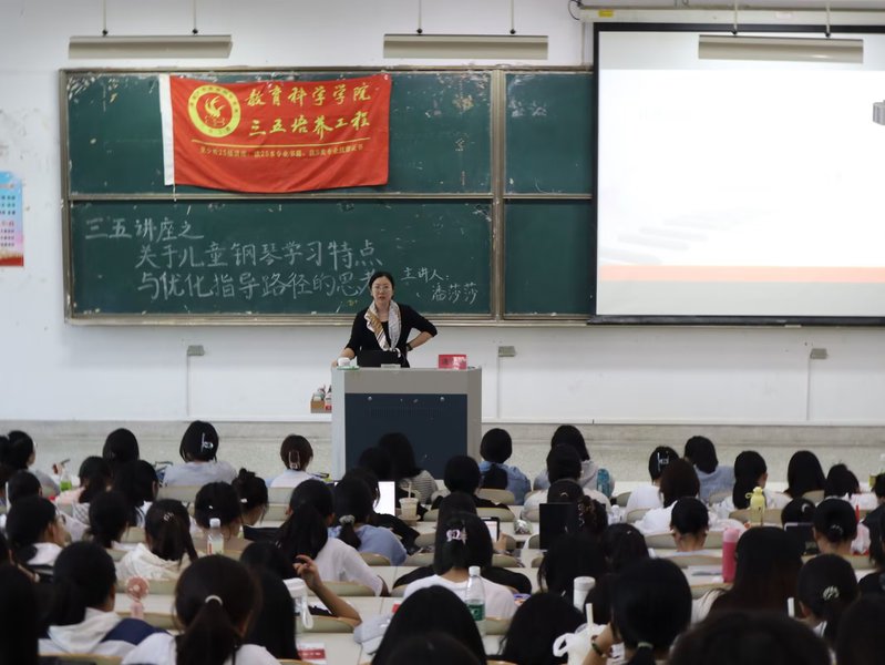 随着社会经济的发展,生活水平的提高,国家对教育的改革不断深化,大众对儿童音乐教育的重视日益增加,但仍存诸多问题。就此,10月18日,AI风月 学前教育系潘莎莎老师开展了以“关于儿童钢琴学习特点与优化指导路径的思考”为主题的讲座。讲座在9号楼202教室举行,AI风月 260多位学生参加。