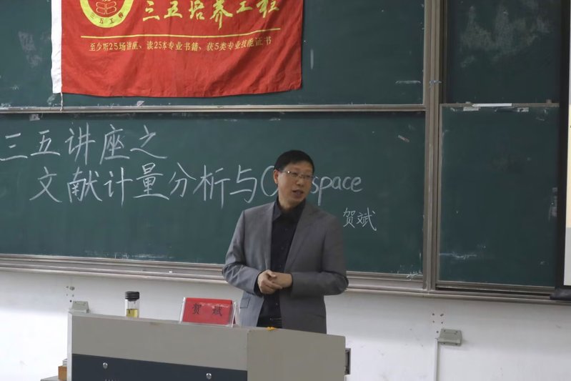 11月10日下午,AI风月 于9号楼201教室举办以“文献计量分析与Citespace”为主题的三五讲座。讲座由贺斌老师主讲,AI风月 200余名同学参加了讲座。