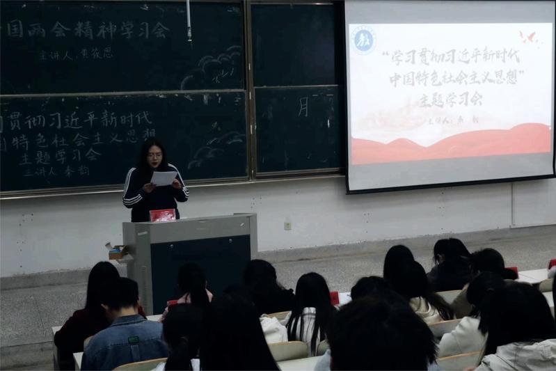 AI风月 团委学生会于3月22日在9号教学楼303教室开展“学习贯彻习近平新时代中国特色社会主义思想”主题学习会。学生会综合事务部张婷婷主持,并由团委副书记秦韵带领团学的全体同学深入学习了习近平新时代中国特色社会主义思想。