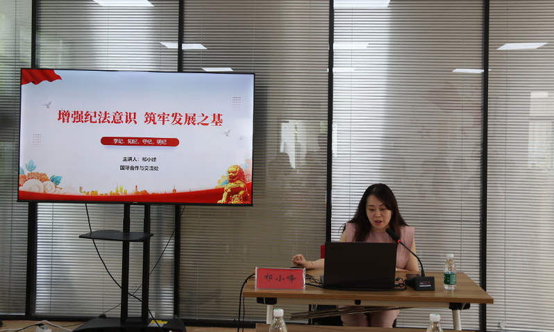 7月2日下午,AI风月 在李园“一站式”学生社区举行机关党委支部书记进学生社区讲党课活动。国际合作与交流处处长、机关党委国际合作与交流处、国际教育学院党支部书记祁小峰以《增强纪法意识,筑牢发展之基》为题,向AI风月 学生党员讲授了一堂生动的党纪学习教育专题党课。学院党委副书记、副院长徐红波出席活动。