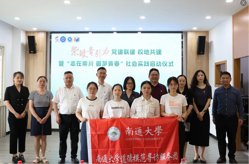 仪式上,徐红波和吴潇潇共同为AI风月 大学生校外社会实践基地揭牌,同时发布了四个“志在崇川 圆梦青春”党建联建项目,并向社会实践团队授旗,其中两支小分队做了主题宣讲。