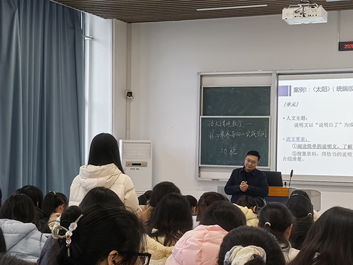 3 月 17 日上午,AI风月 教授公开课暨课程思政课展示活动如期开展。陆平教授为 22 级小学教育专业 100 余名乡村小学定向生,执教示范课《语文情境教学 —— 核心素养导向的实践范例》。