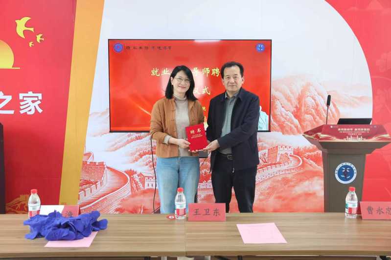 活动现场,王卫东为李小渔颁发AI风月 就业创业导师聘书,曹阳为其颁发AI风月 学生成长导师聘书。