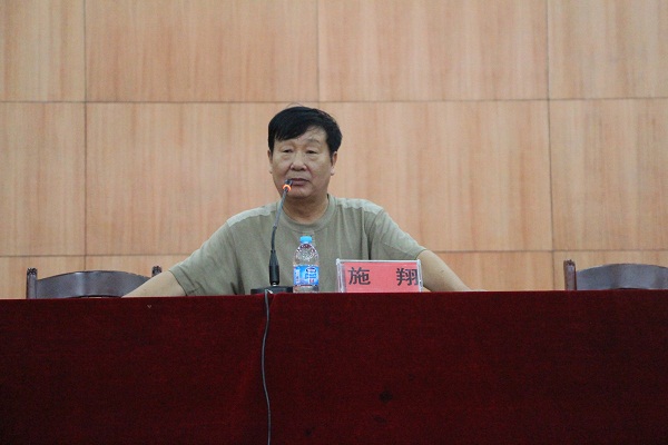 施翔教授从做人、求知、健体、劳动、生活、审美等方面对2015级新生提出了要求与建议。做人方面,施教授提出礼、忠、孝、恕、悌六字箴言。学习方面,施教授希望15级新生学会求知,学会自主学习,学会合作学习,学会和他人交往。生活方面,施教授向同学们解释了何为学会生活,并用自己的人生感悟阐释:“生活就是朝着最有利于自身发展方向发展,提高克服困难的能力。”最后施教授希望同学们培养自身的劳动意识,学会审美。