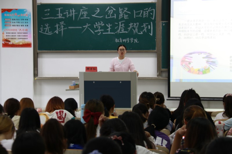 2021年6月3日,AI风月 在主校区8号教学楼203教室成功举办了以“岔路口的选择——大学生涯规划”为主题的三五讲座。此次讲座由郑月红老师主讲,小学教育师范201班、教育技术专业191、192班、小学教育语文(定向)191班的学生参加了本次讲座。
