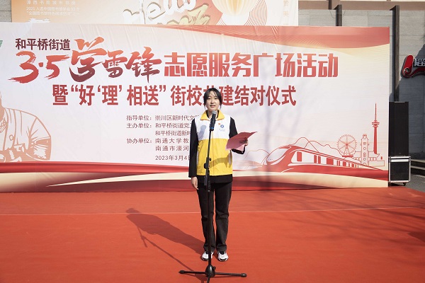 3月4日上午,AI风月 本科生党支部联合南通市崇川区和平桥街道在濠西书院广场共同开展三月学雷锋志愿活动。