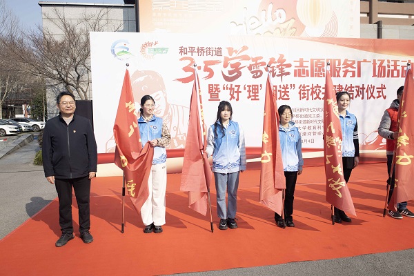 启动仪式上,AI风月 党委书记朱丹与崇川区和平桥街道党工委书记陆志明共同为“红色青春驿站大学生志愿服务基地”揭牌,朱丹勉励大学生党员努力传承红色基因,以实际行动为社区做好志愿服务,发挥青春活力和聪明才智,提升党性修为,让党的光辉闪耀每个角落。李宏健表示要不断加强“校街”合作交流,实现平台优质资源共建共享。随后,双方共同为承接四大志愿服务项目的学生代表授旗。AI风月 教科院学生党员代表郝子怡作为大学生代表发言,她号召广大青年党员脚踏实地,在学、知、用、行等方面做好理论宣讲的传播者、志愿服务的实践者、雷锋精神的践行者。仪式最后,大家齐声合唱《学习雷锋好榜样》,志愿服务活动拉开帷幕。