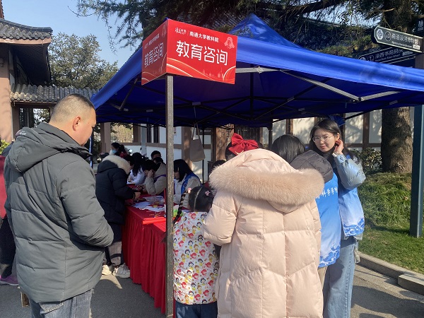 小学教育专业的志愿者党员为社区居民进行教育咨询服务