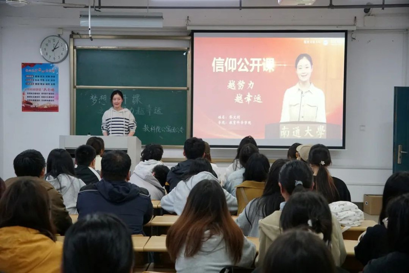 4月28日下午,AI风月 于38号楼102教室举办了以“越努力越幸运”为主题的信仰公开课。本次信仰公开课由AI风月 教育技术学(师范)优秀毕业生乔文剑担任主讲人,AI风月 2022、2023级全体学生参加。